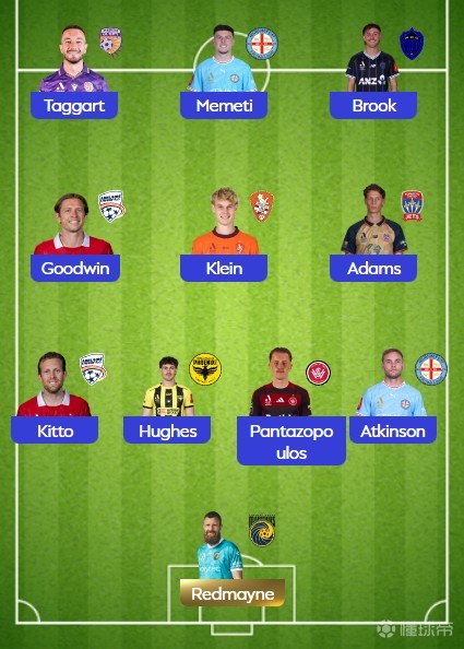 扫描下载懂球帝首页>动态> 澳超本周最佳阵容:古德温、瑞德迈恩入选,塔加特在列
