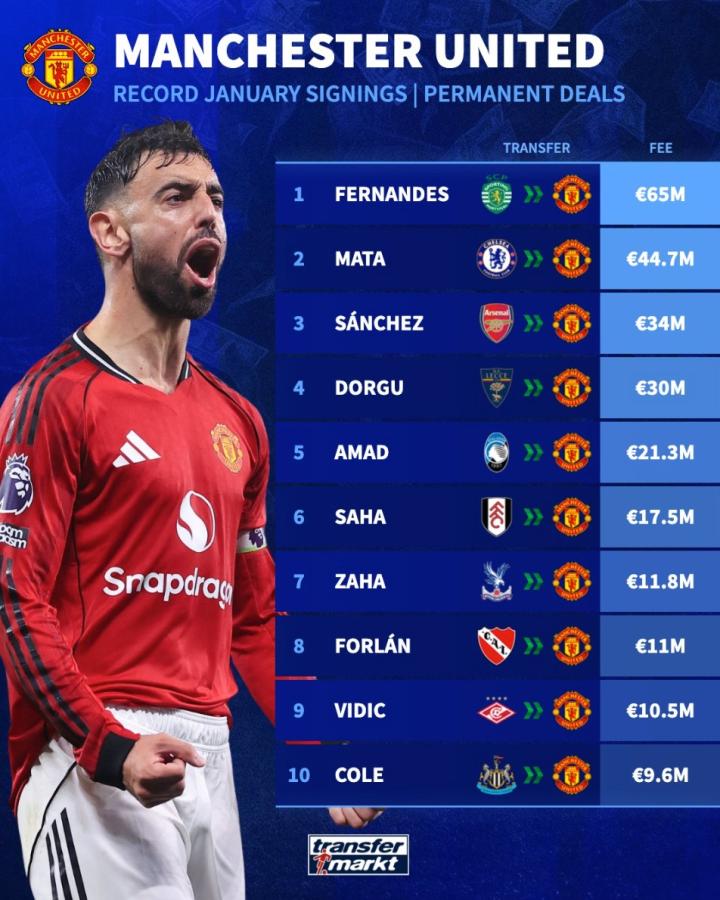 扫描下载懂球帝首页>动态> 德转列曼联队史冬窗最贵引援TOP10:B费、马塔、桑切斯前3
