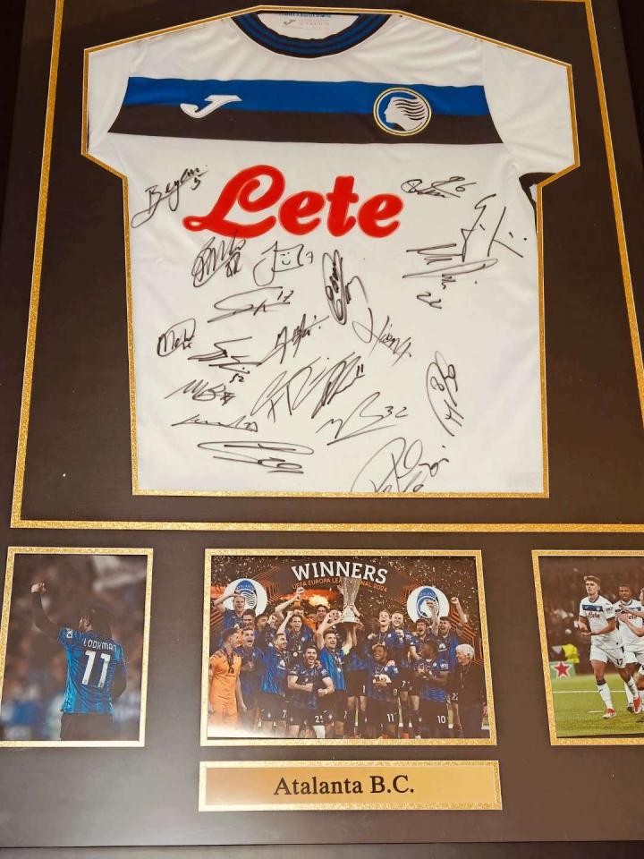 #最浪漫球迷 这是亚特兰大欧联夺冠后,我收藏的一件签名球衣。这不仅仅是加斯佩里尼执教长达九年,为球队带来了首个欧联冠军,也是他职业生涯的首个冠军。很多亚特兰大的球员,曾经或多或少都在职业生涯中失意,就是这样的一群失意者联盟也在加公的带领下得以脱胎换骨。队内的头号攻击手卢克曼一度成为了非洲足球先生,德凯特拉雷也成为了球队的前场核心,未来比利时的中坚力量。