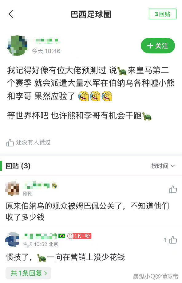 巴西圈的球迷说是姆巴佩派水军嘘的