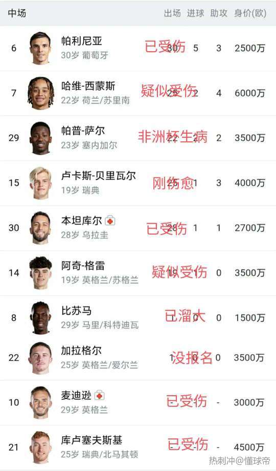 十个中场剩1个。 这就是热刺