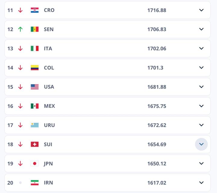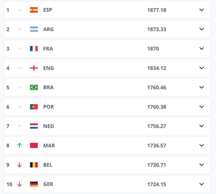 扫描下载懂球帝首页>动态> FIFA世界排名更新:摩洛哥第8历史最高,国足仍排世界第93