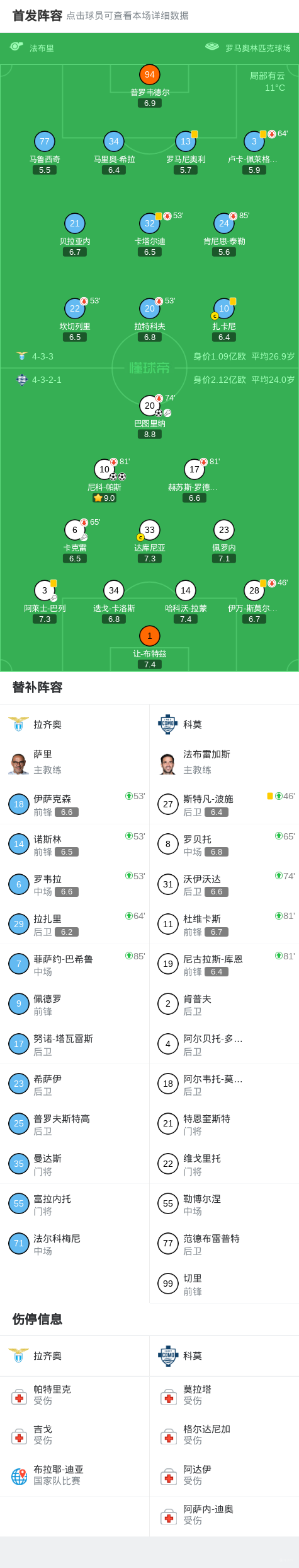 01-20 05:23拉齐奥 vs 科莫 比赛动态