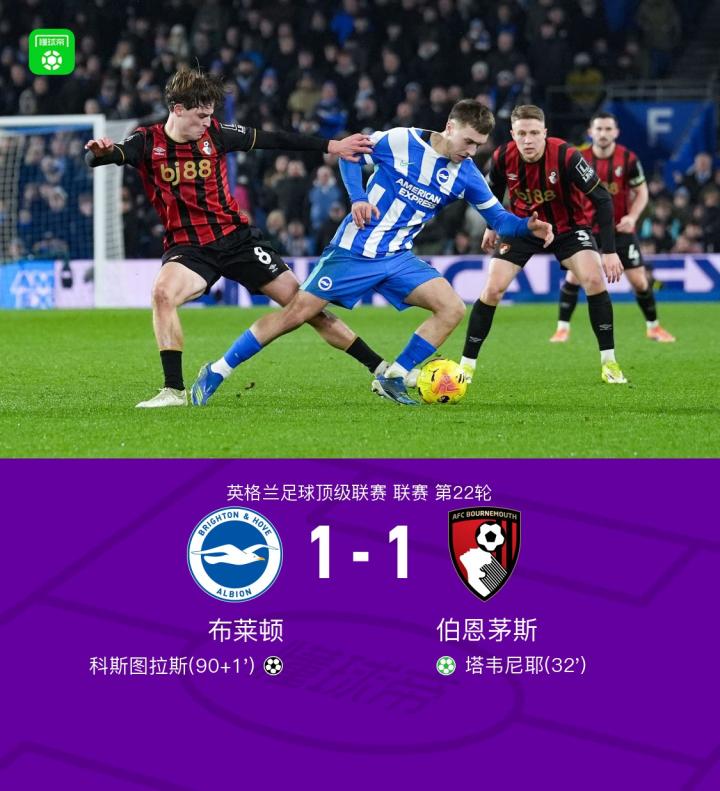 01-20 07:41夯爆了,布莱顿18岁小将科斯图拉斯补时倒钩绝平