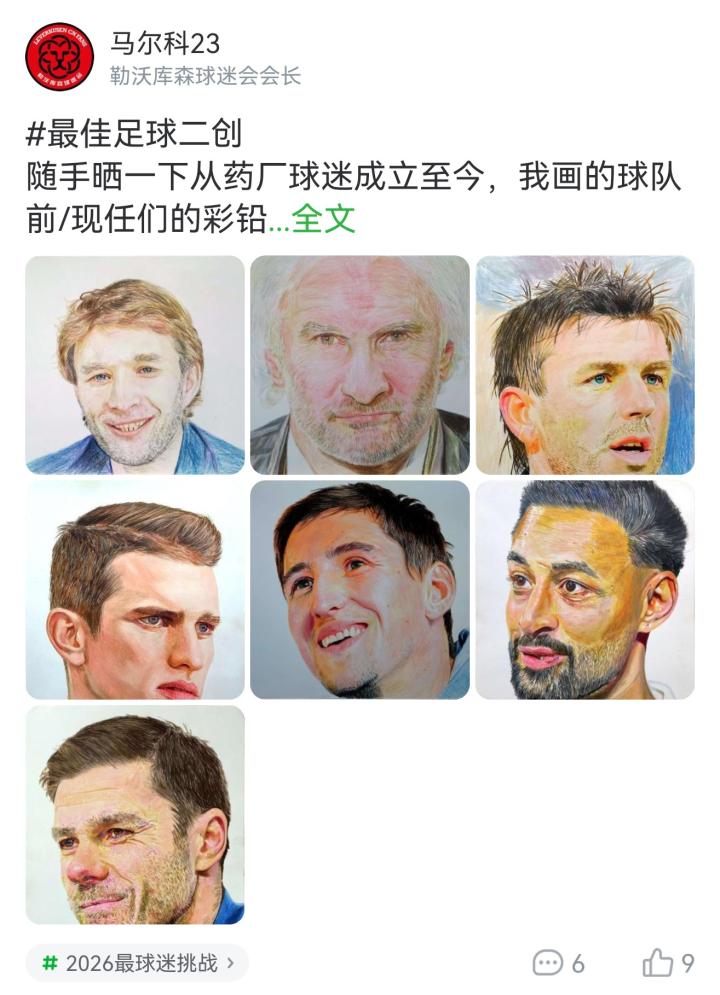 @马尔科23 既是勒沃库森圈主,更是有才画家!他用彩铅绘出热爱的面孔,给球队送上暖心礼物!