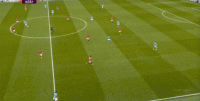 这也使得曼联在开场只有2分钟的时候,就用两次长球直打,直接进入了曼城的禁区线空间内: