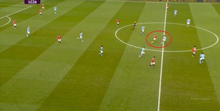 这些地方并没有队友给布鲁诺制造出空间,大部分都源于曼城在逼抢时出现的脱节,当然也和曼城的逼抢效率不足有关,毕竟这是曼城在新年后的第六场比赛,只是曼联的第四场。