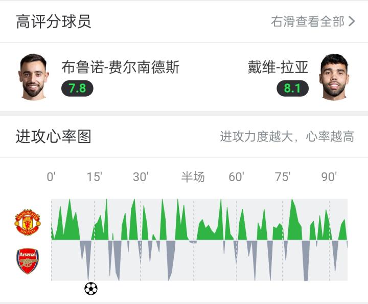 按照“进攻心率图”,曼联和阿森纳的表现是这样的: