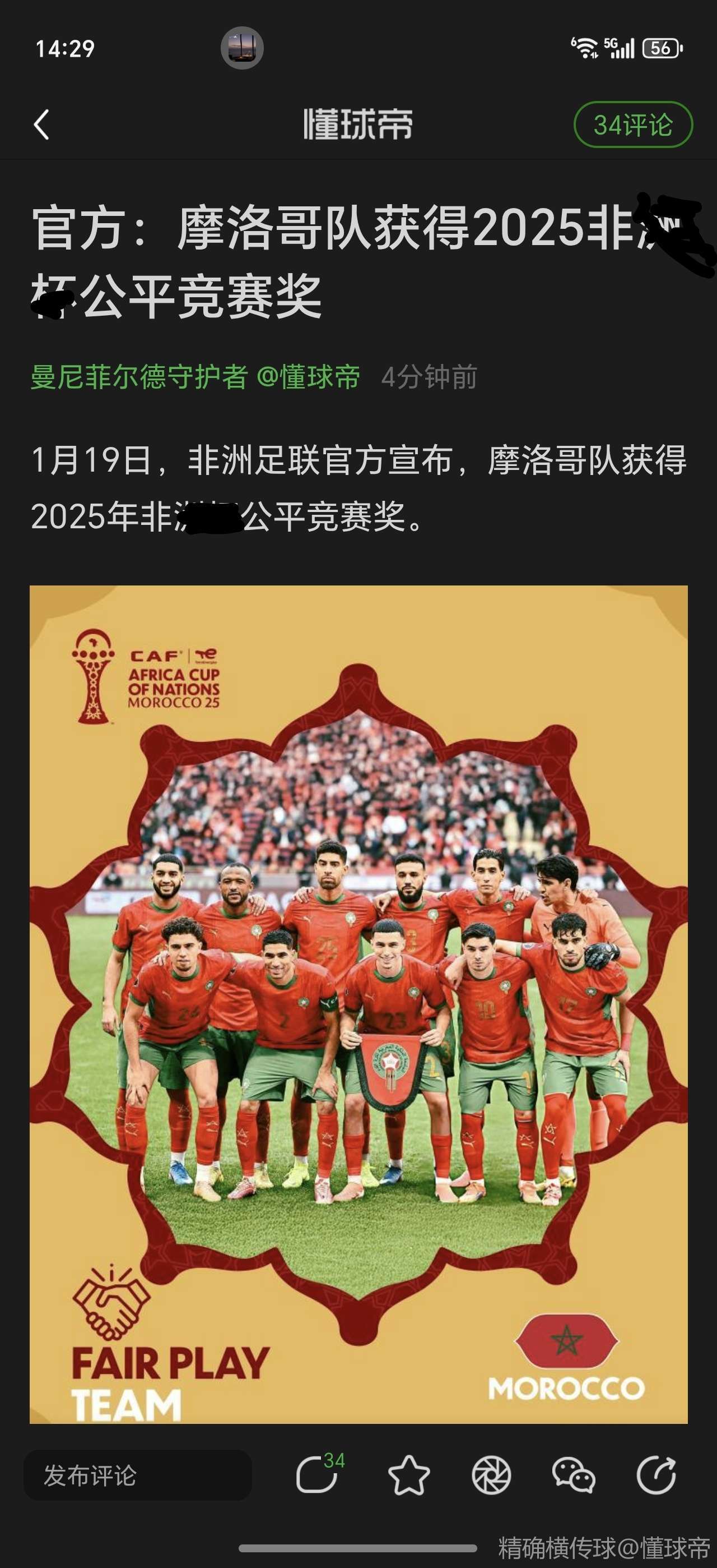 扫描下载懂球帝首页>动态> 官方:摩洛哥队获得2025非洲杯公平竞赛奖
