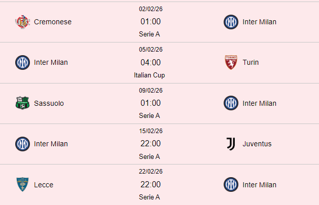 另外,国米在2月份联赛的对手整体实力不强(除了尤文图斯)。而与此同时,其他争冠对手(如AC米兰、那不勒斯、罗马、尤文图斯等)则需要对阵博洛尼亚、科莫、罗马、亚特兰大、拉齐奥这些上半区的强队。
