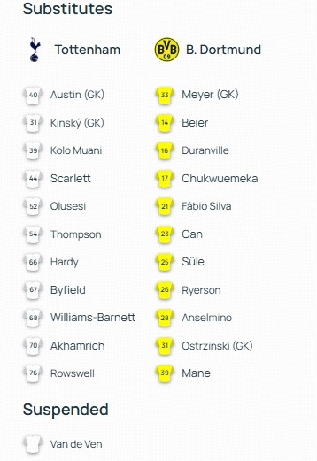 01-21 04:59半场战报:热刺2-0多特,罗梅罗建功,斯文松染红