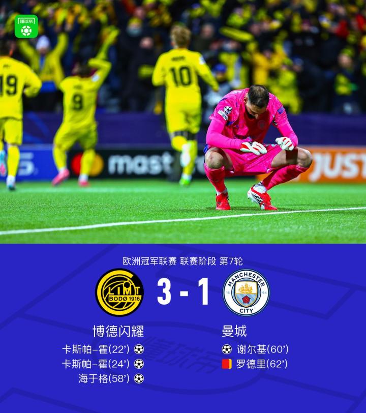 扫描下载懂球帝首页>动态> 剑南春丨曼城1-3博德闪耀,卡斯帕-霍两分钟两球,罗德里染红