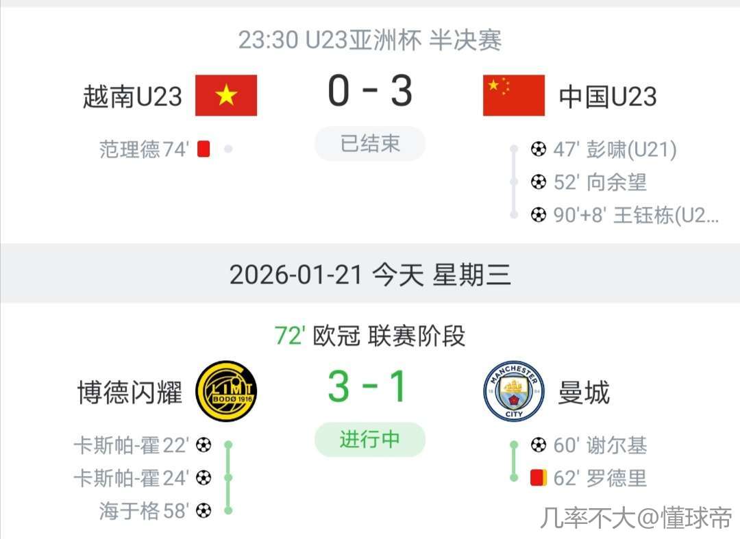 曼城输给给博得当天,国足赢了越南