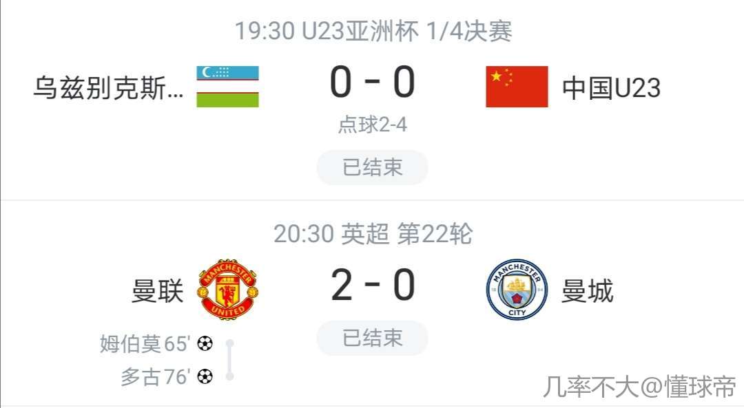 曼城输给给曼联当天,国足赢了乌兹别克斯坦