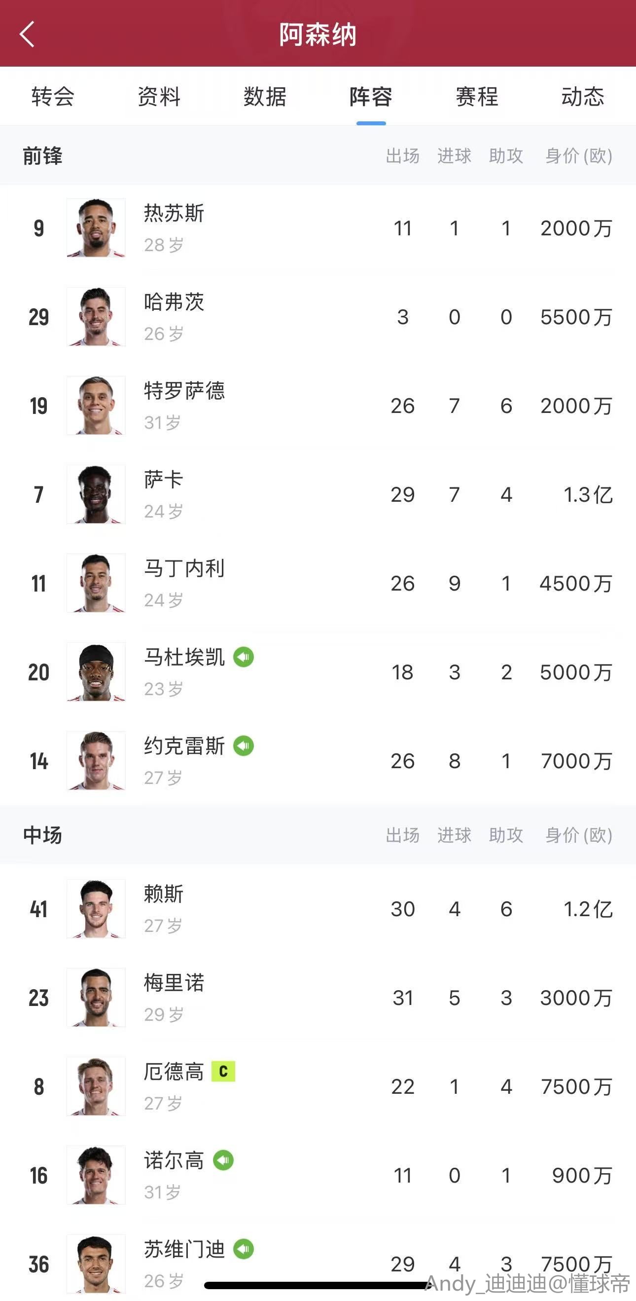 阿森纳替补上来5个人,德转身价3.4亿,所以国米输的也不冤