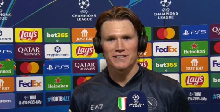 在客场1-1战平哥本哈根的赛后,本场比赛打入一球的那不勒斯中场麦克托米奈接受了CBS体育的采访。