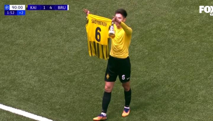 本场比赛伤停补时阶段,阿拉木图凯拉特球员萨德别科夫打进一脚精彩的凌空抽射,随后他举着自己的球衣来到看台前,向球迷们展示了自己的球衣。