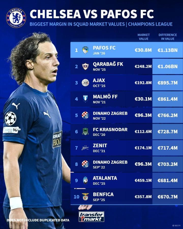 扫描下载懂球帝首页>动态> 不够零头,帕福斯成为切尔西欧冠历史身价差距最大的对手