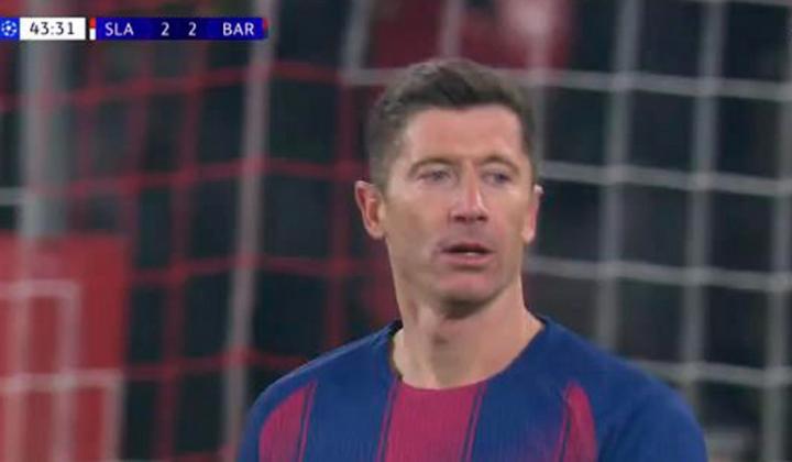 莱万半场进乌龙,布拉格斯拉维亚将莱万巴萨球衣P成自己球衣