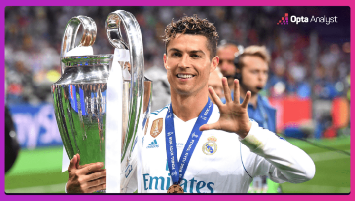 他在93场不同的欧冠比赛中取得进球,占其出场数的51%,其中8场比赛上演帽子戏法,这项纪录他与梅西共享。