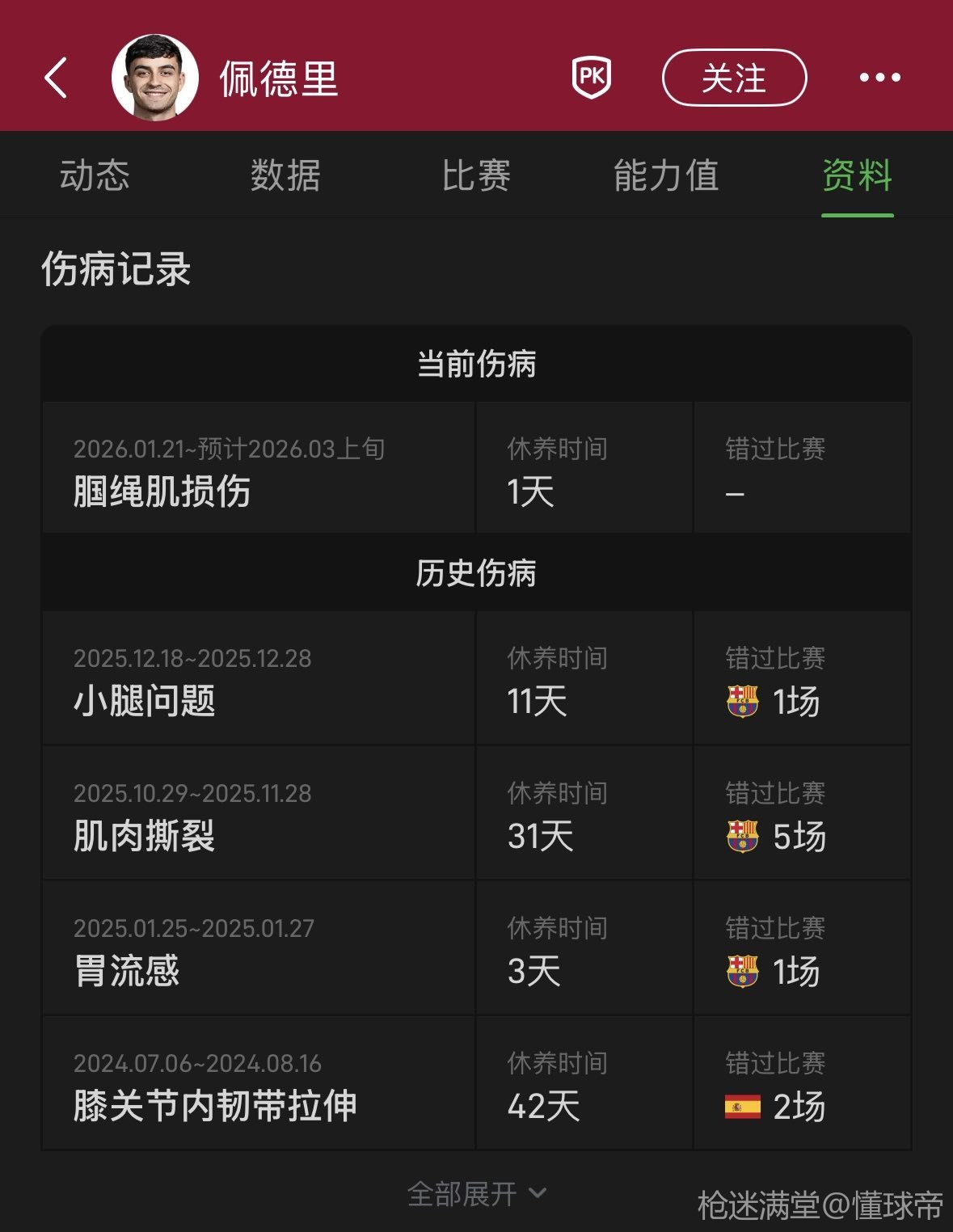 01-22 17:53巴萨取胜代价高昂:佩德里腿筋受伤,预计缺席4-5周