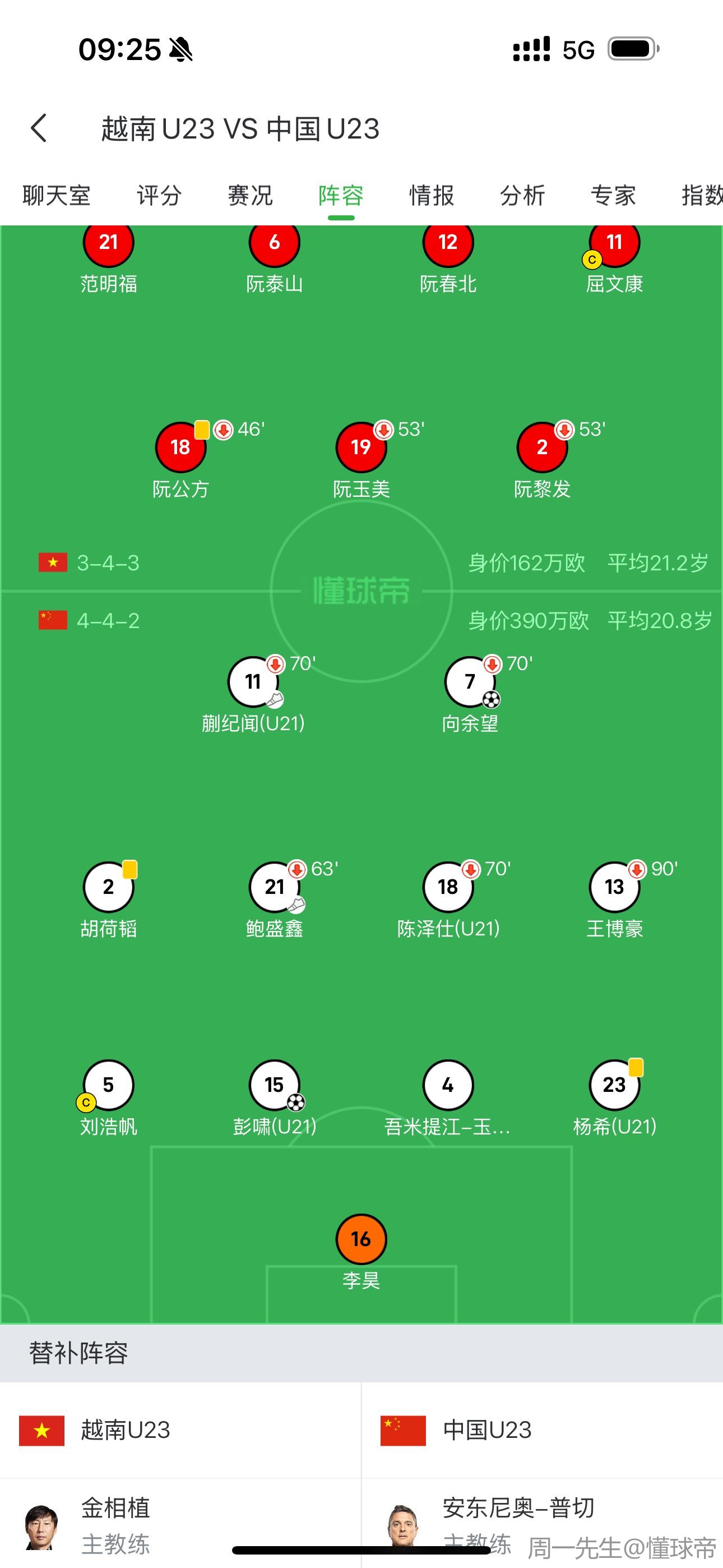中国队首发平均不到21岁也没多大吧?