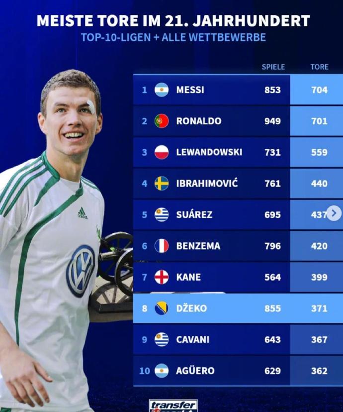 扫描下载懂球帝首页>动态> 懂球号> 德转统计了本世纪前十大联赛以及各项赛事球员射手榜