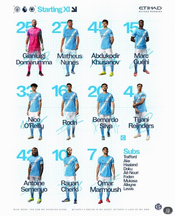 扫描下载懂球帝首页>动态> 曼城vs狼队:格伊、塞门约首发,马尔穆什出战,哈兰德替补