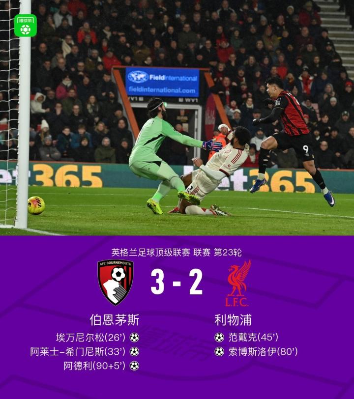 扫描下载懂球帝首页>动态> 剑南春|利物浦客场2-3遭伯恩茅斯绝杀,索博斯洛伊传射难救主