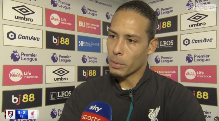英超第23轮,利物浦客场2-3遭伯恩茅斯绝杀,赛后,利物浦队长范戴克接受了天空体育的采访。
