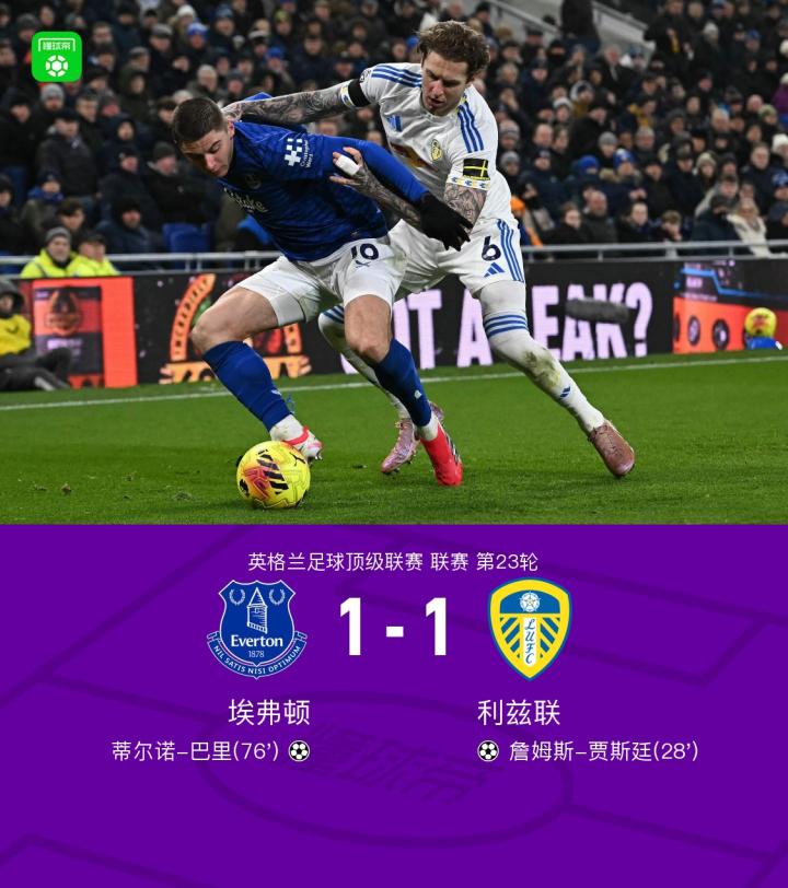 扫描下载懂球帝首页>动态> 埃弗顿1-1利兹联,巴里破门,贾斯廷建功