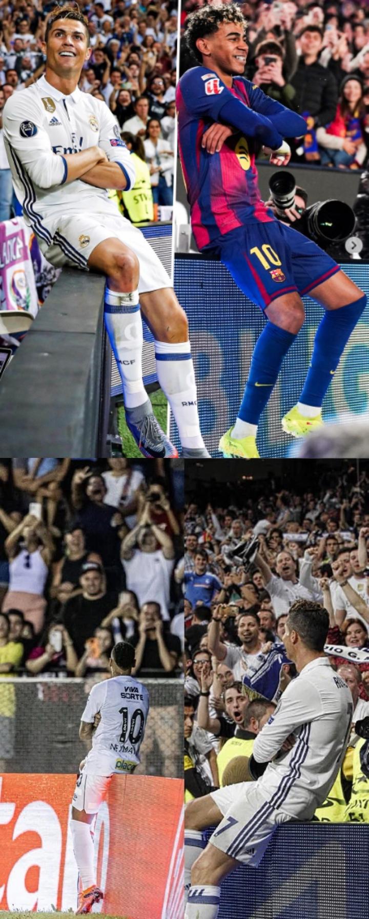 扫描下载懂球帝首页>动态> 懂球号> 到底致敬谁?巴萨太子亚马尔近日疑似模仿C罗庆祝动作