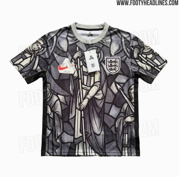 这款球衣是耐克与本地品牌Palace的联名款,拥有大胆的全覆盖图案设计,灵感来自彩色玻璃艺术。整件球衣覆盖着单色插图,创造出一种大胆而富有艺术感的外观,与以往英格兰球衣上看到的设计截然不同。