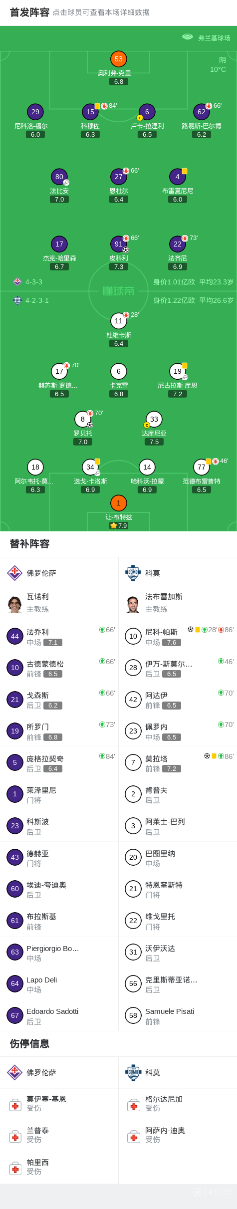 01-28 05:59佛罗伦萨 vs 科莫 比赛动态