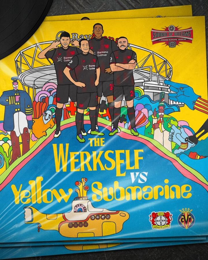 扫描下载懂球帝首页>动态> 勒沃库森vs黄潜海报:致敬披头士《黄色潜水艇》封面