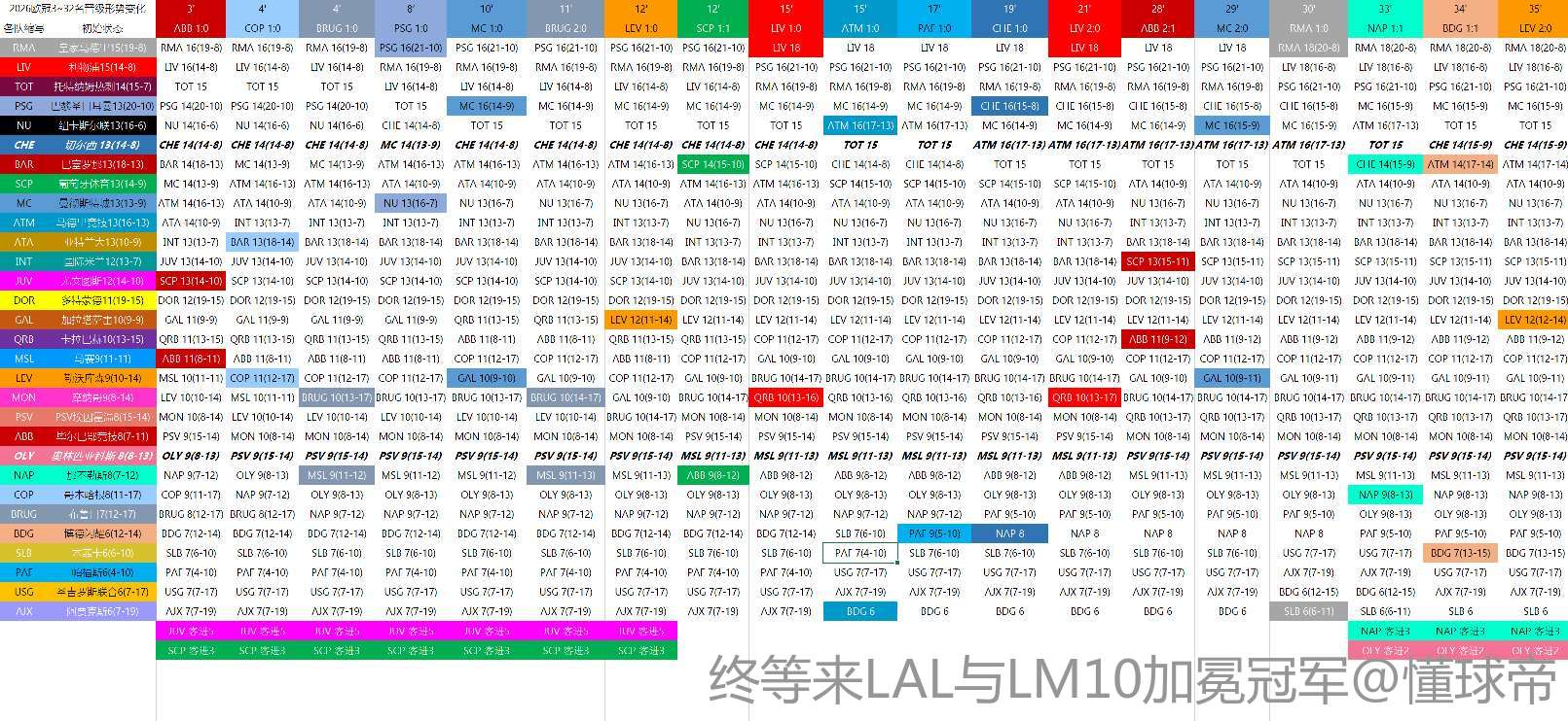 32.阿贾克斯:博德闪耀、本菲卡落后时才来到第30,但之后这两队都相继领先,最终以第32完赛,无缘淘汰赛附加赛。