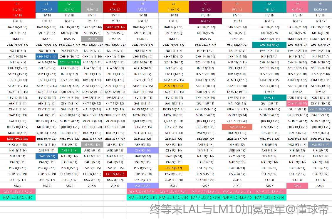 13.亚特兰大:从未进入前8,被进球后跌至最低排名第15,并维持该排名至结束,将参加淘汰赛附加赛。