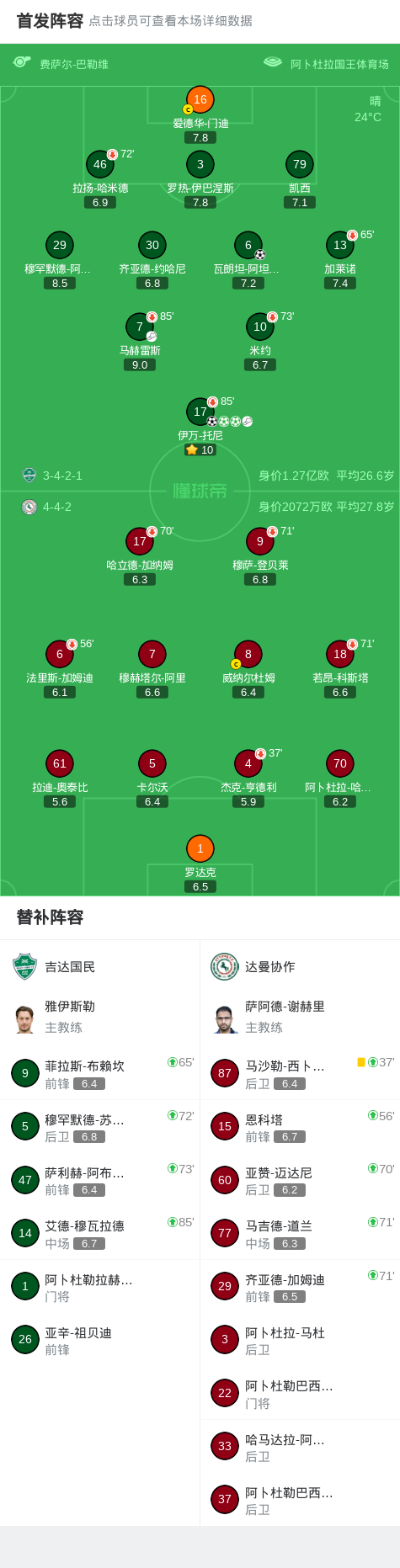 第64分钟,吉达国民球员伊万-托尼助攻瓦朗坦-阿坦加纳打入一球。