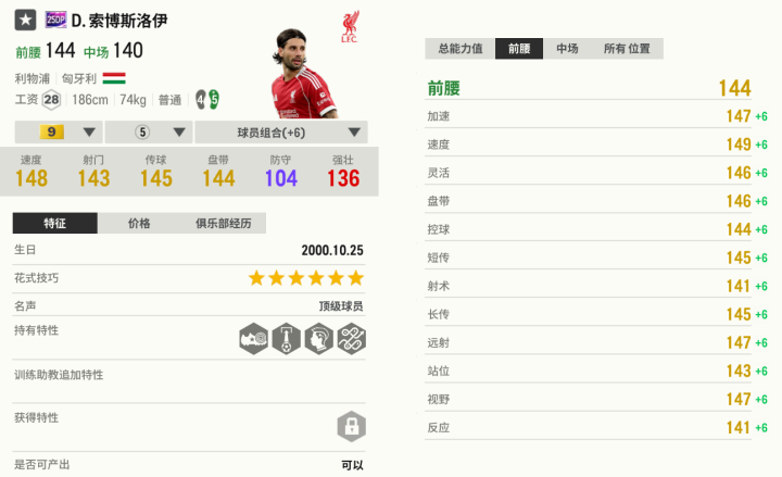25DP索博斯洛伊是利物浦套现役球员里的多功能中场,他有着很好的进攻属性,也有精准的传球,而且他的跑动面积广,能协助补充防守人数。所以,从前腰到中场他均能胜任。