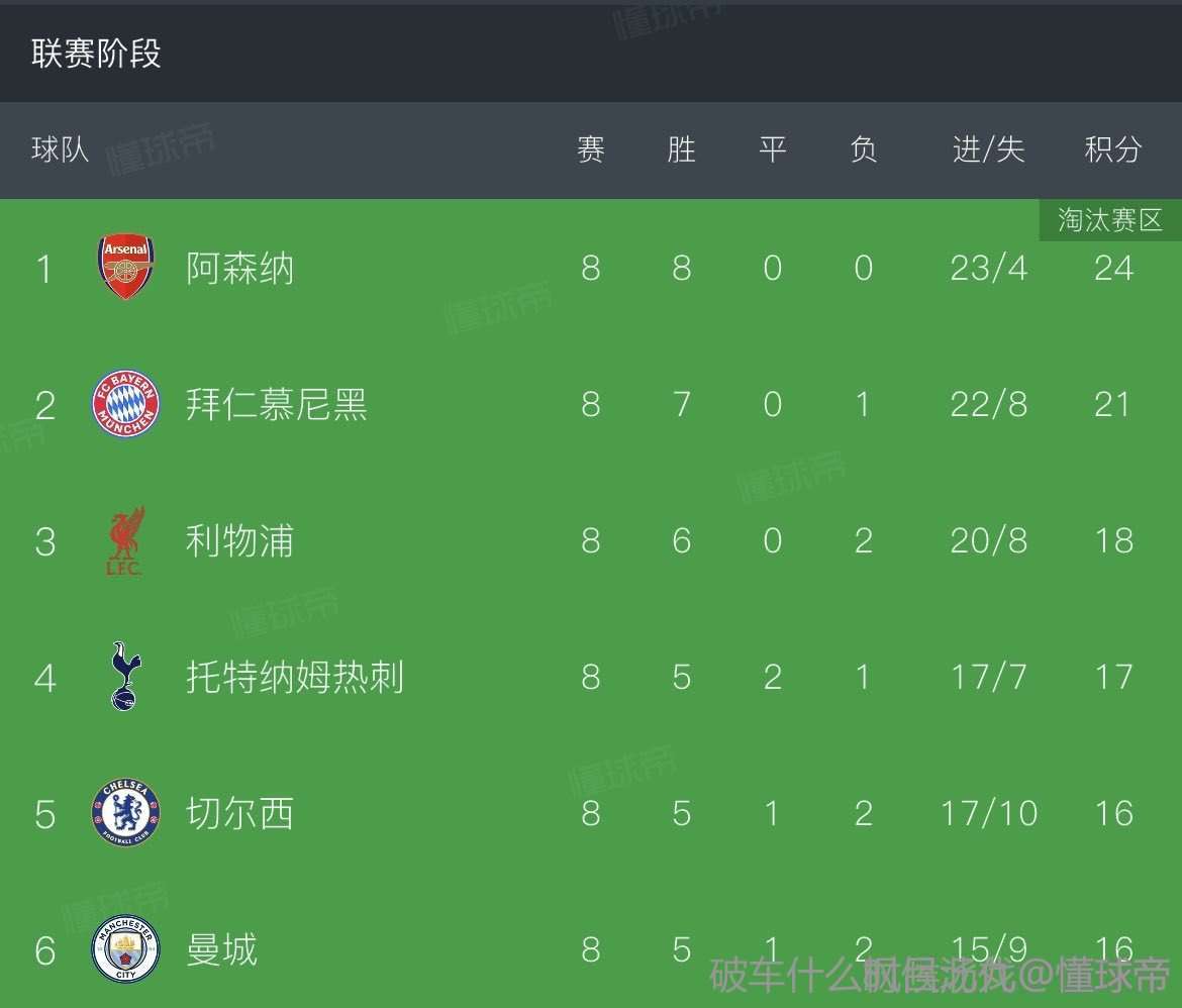 但把目光投向积分榜另一端,便知欧足联的窘境所在:他们设计这套新赛制,绝非为了让同一联赛的五支球队跻身积分榜前八,直接锁定16强席位并坐拥抽签优势,而第六支英超球队也险些挤进这一行列。