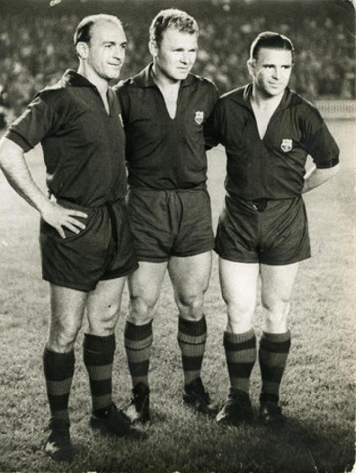 在巴萨为他举行的告别赛上,迪斯蒂法诺与普斯卡什也穿上了巴萨球衣,三位19世纪50年代的伟大巨星留下了这张宝贵的合影。