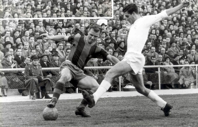 1953年夏天,巴萨和皇马同时签约迪斯蒂法诺,国际足联裁定让迪斯蒂法诺在巴萨和皇马各效力两个赛季,巴萨最终因各种原因让步,将迪斯蒂法诺的一半所有权卖给了皇马。