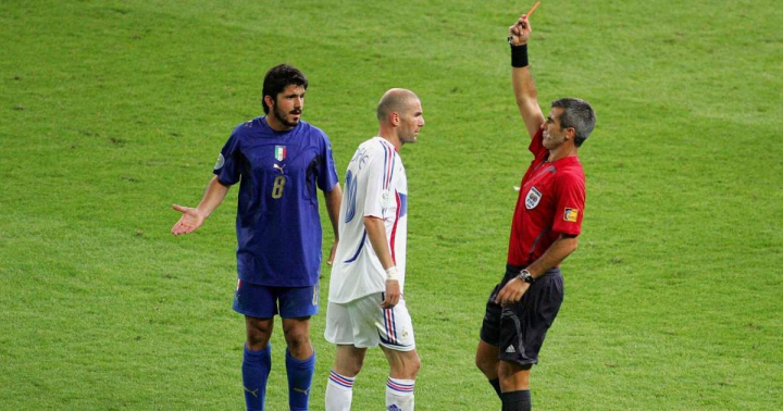 2006年7月10日,世界杯决赛,意大利与法国激战至加时赛。加时赛第119分钟,法国队长齐达内突然暴怒,用自己的头将意大利的后卫马特拉齐撞倒。