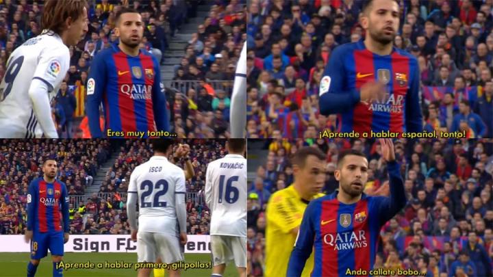 2016年的西班牙国家德比中,当时卡瓦哈尔对内马尔犯规,巴萨获得任意球,当时效力于皇马的科瓦契奇与队友一起排人墙,巴萨的边后卫阿尔巴此时开始对着科瓦契奇输出,后来经过唇语的解读,阿尔巴说的是:“学学你的西班牙语吧!傻子。”