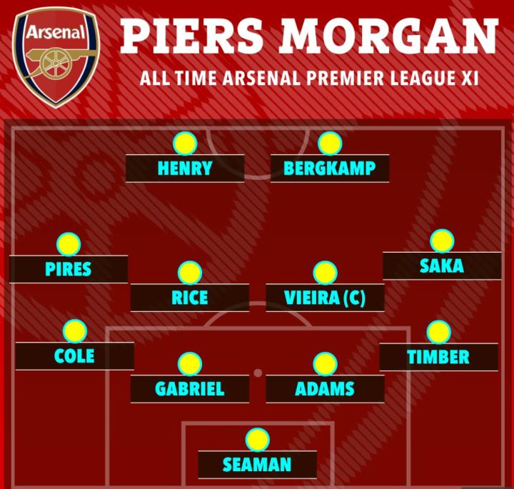 扫描下载懂球帝首页>动态> 摩根评枪手历史最佳阵容,赖斯、萨卡等现役4人入选引发热议