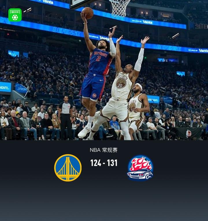 第四节,开节勇士希尔德、穆迪相继三分追至7分,紧跟活塞坎宁安、杜伦、艾维一波7-0再度拉大分差,但随后活塞突然进攻断电,勇士希尔德、桑托斯领衔一波13-2追至3分分差,活塞哈里斯、詹金斯冲框止血,随后活塞持续保持5分上下分差,全场结束,勇士124-131不敌活塞。