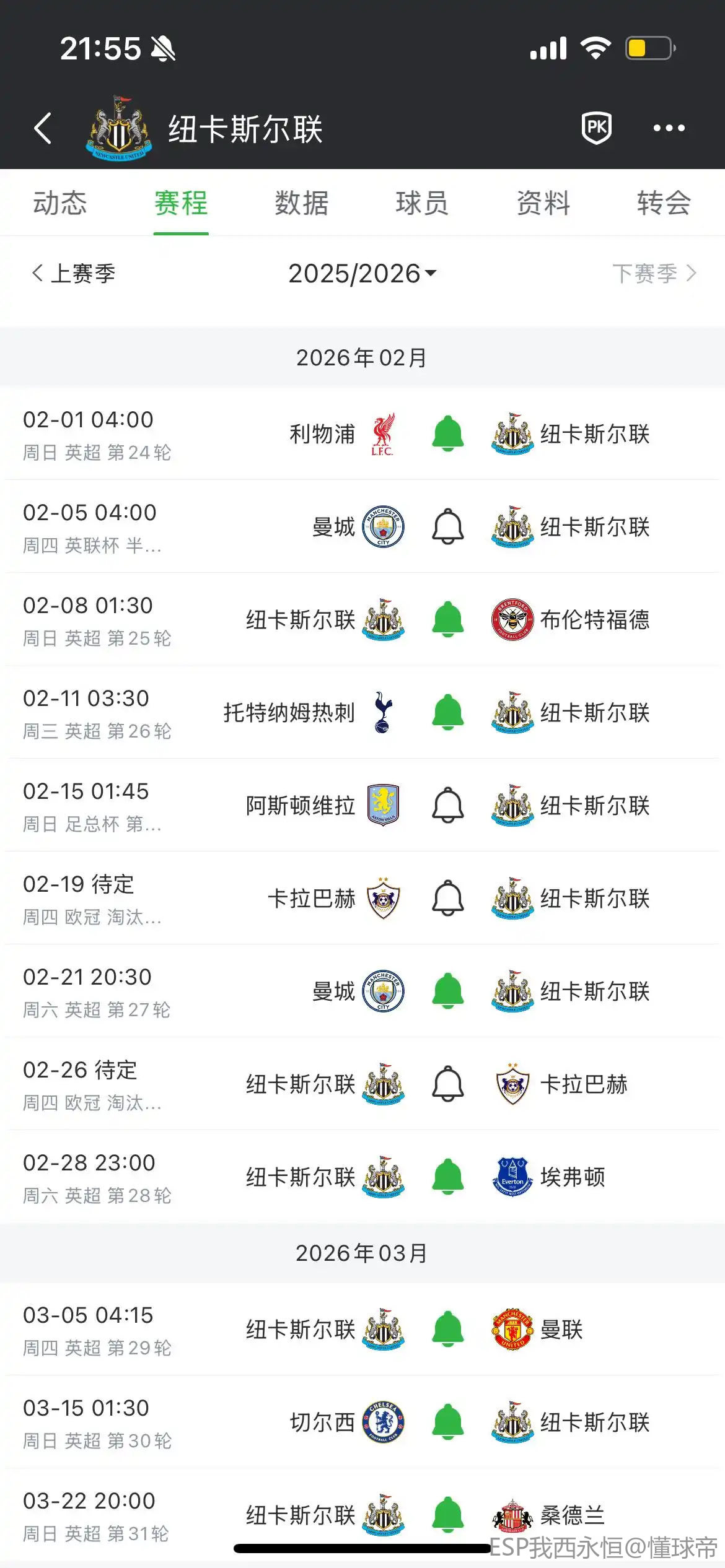 看看纽卡2月份28天9场的恐怖赛程 欧冠没直通给自己加了地狱戏