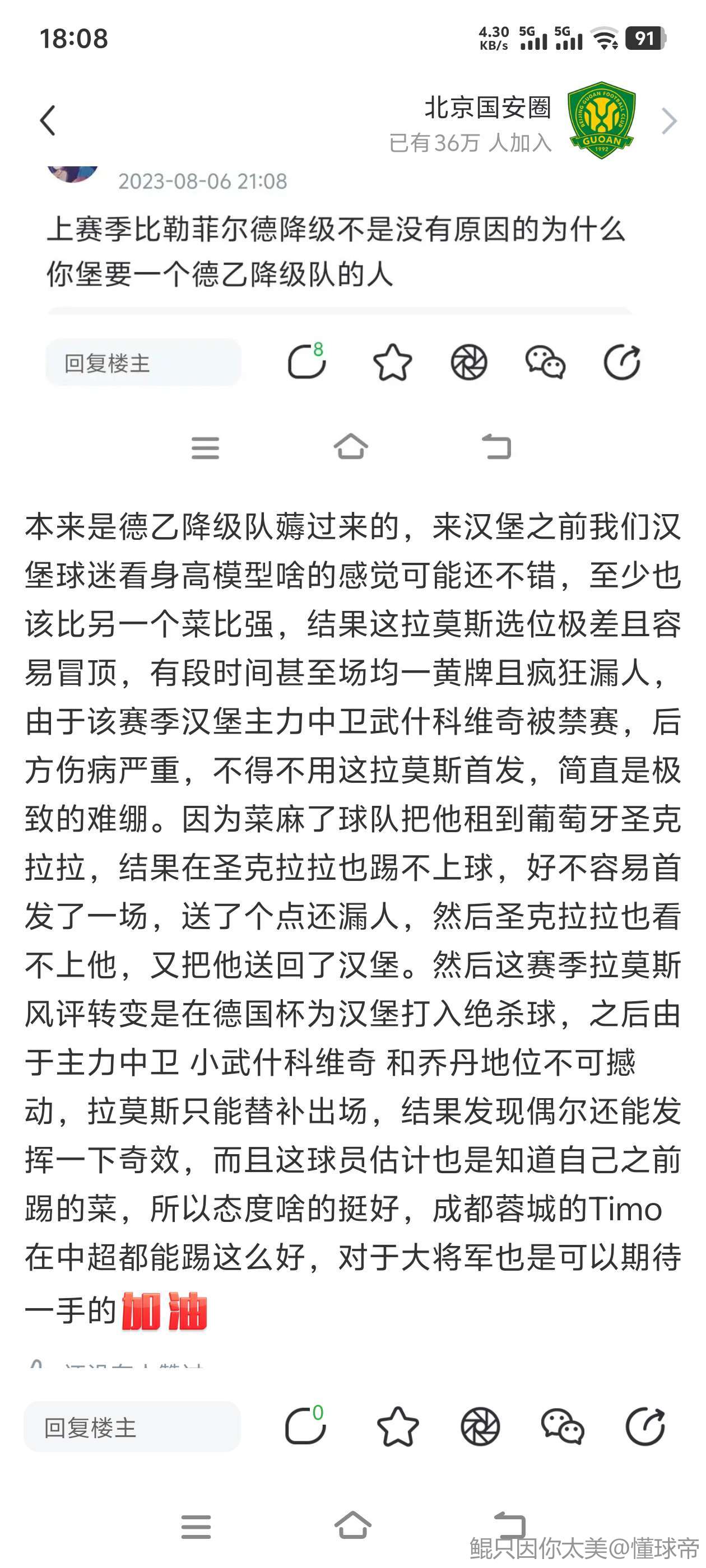 ,但是国安球迷还是放低期望好点,他刚来汉堡那会我们汉堡球迷也是给予很高期望的。另外,我只想说,能在中超看到大将军真的太有趣了