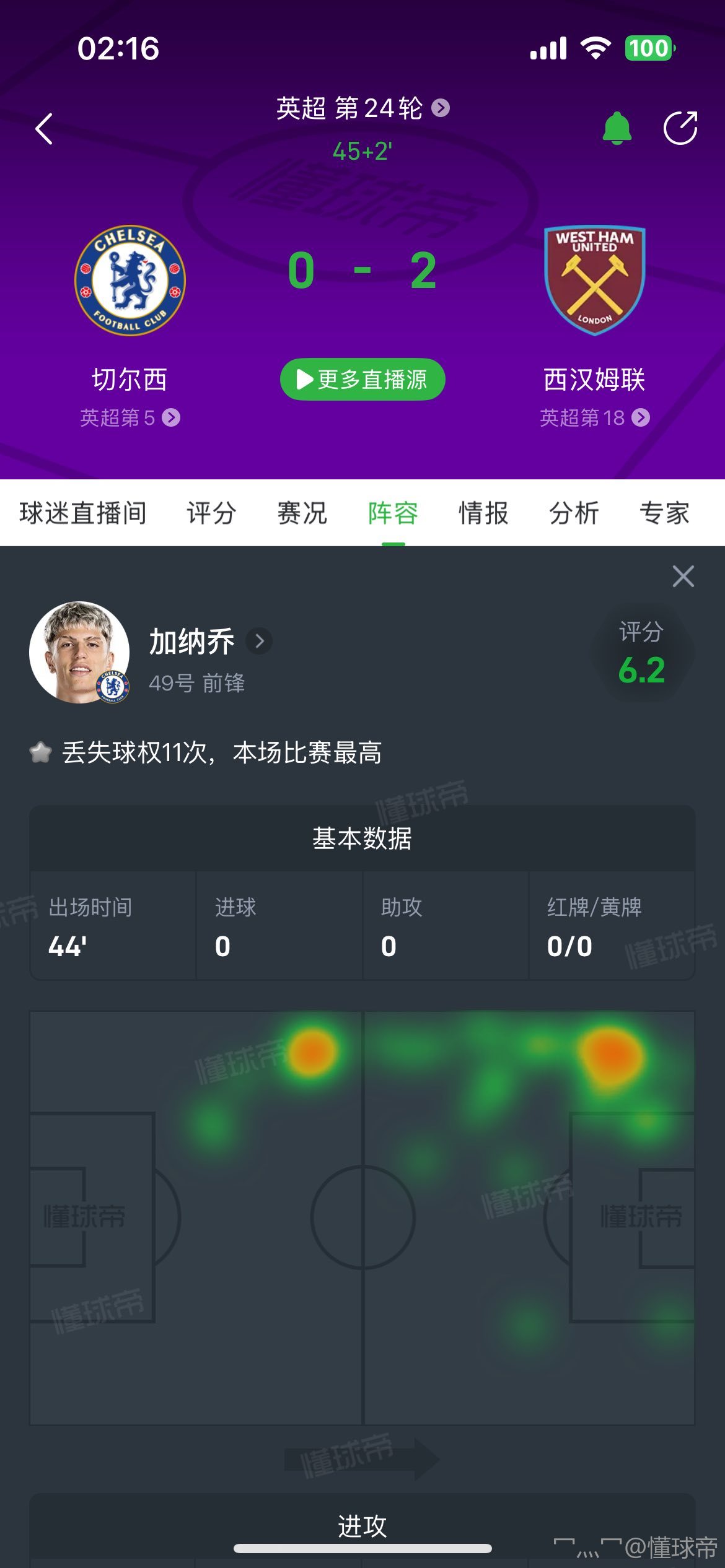 扫描下载懂球帝首页>动态> 半场:切尔西0-2西汉姆联,鲍恩、萨默维尔破门,吉滕斯伤退