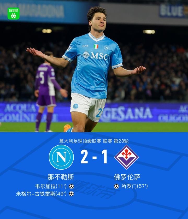 扫描下载懂球帝首页>动态> 那不勒斯2-1佛罗伦萨,韦尔加拉、古铁雷斯建功